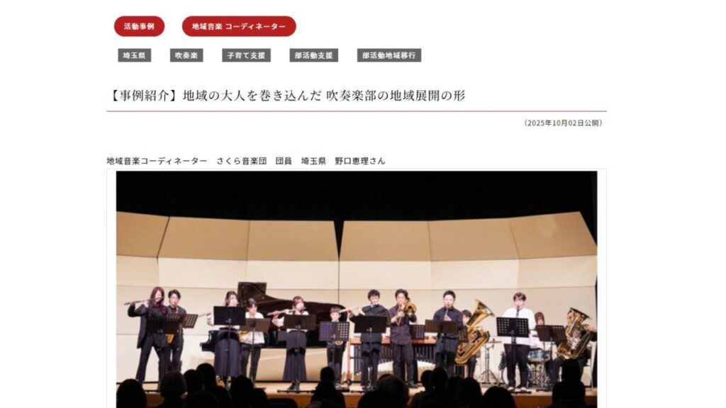 【事例紹介】地域の大人を巻き込んだ 吹奏楽部の地域展開の形 – 音楽文化創造
